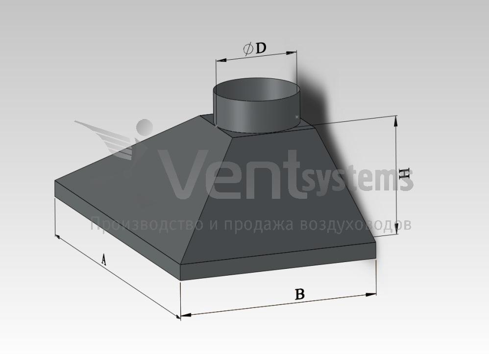 Прямоугольный стальной оцинкованный вытяжной зонт с круглой врезкой
